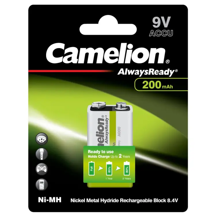 باتری کتابی (9 ولت) قابل شارژ (شارژی) برند کملیون 200 میلی امپر -جعبه 12 عددی